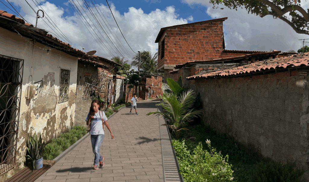 Realizado pela OSC Quintau Coletivo, em parceria com o Studio Travessa, o Programa de Educação Tutorial de Arquitetura e Urbanismo da UFC (ArqPET UFC) e o Centro de Defesa da Vida Herbert de Souza (CDVHS), o projeto “Do Risco à Permanência” tem como objetivo principal o desenho de uma solução integrada de urbanização que garanta a permanência, sob condições dignas, de famílias em uma comunidade que sofre historicamente com enchentes e não foi contemplada por investimentos em saneamento básico.
